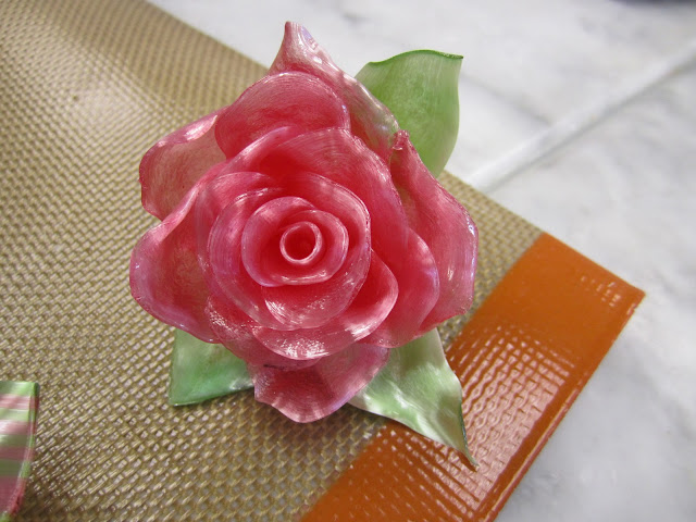 Tuesday morning was working with pastiallge, which is a mixture of gelatin, lemon juice, and icing sugar. Once you mix it together into dough then you can roll it out and make all sorts of different shapes with it. The dough dries very fast, so you have to work extremely quickly. The result looks like porcelain and has that same texture.